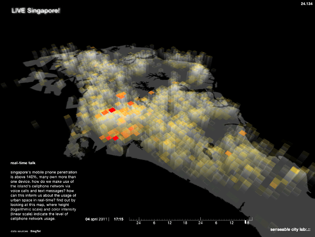 A terme, LIVE Singapore! a pour ambition de produire une plate-forme où développeurs et citoyens pourront travailler de nouvelles idées liée à une API flexible et accessible et à de nouvelles techniques de visualisations de données. Cela ne vous rappelle rien ? Lisez leur description de projet : “redonner aux gens les données qu’ils ont eux même généré de par leurs actions, afin de leur permettre d’être mieux synchronisé avec leur environnement, et de prendre des décisions sur la base d’informations qui reflètent l’état actuel de leur cité”.